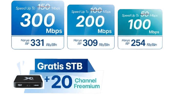 Nikmati koneksi hingga 300 Mbps yang bikin semua aktivitas seperti meeting online, belajar, streaming, hingga hiburan jadi lebih cepat dan tanpa hambatan.